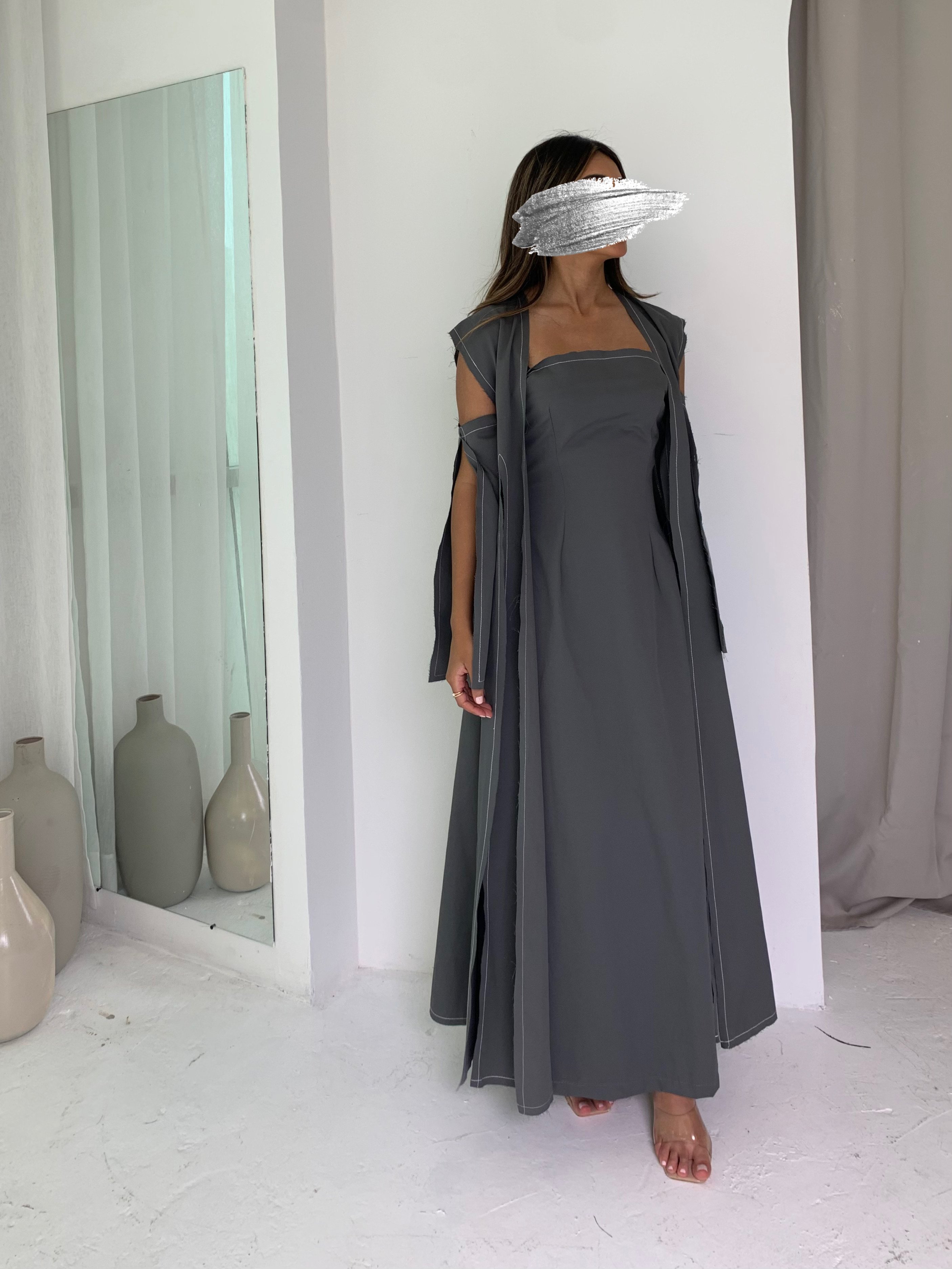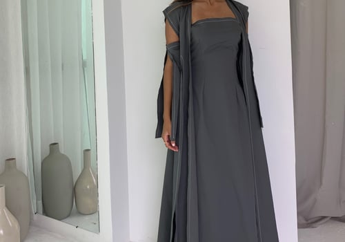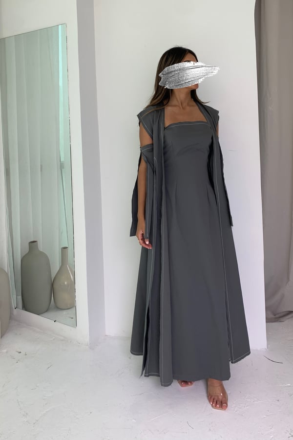 Velvet grey kaftan with shiny scarf