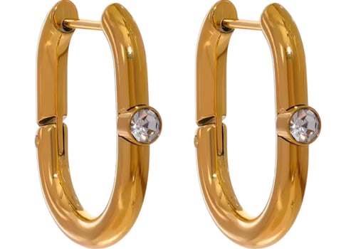 Stainless Steel Geometric CZ Huggie Earrings