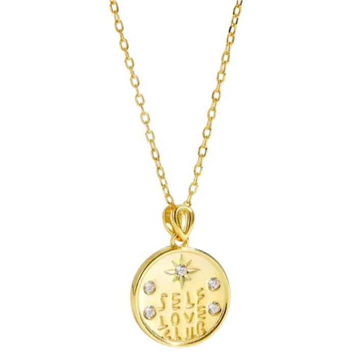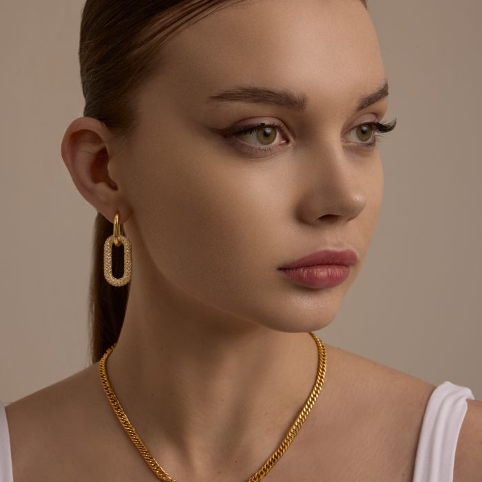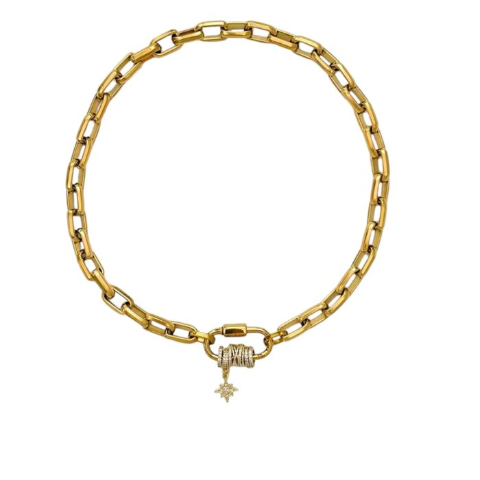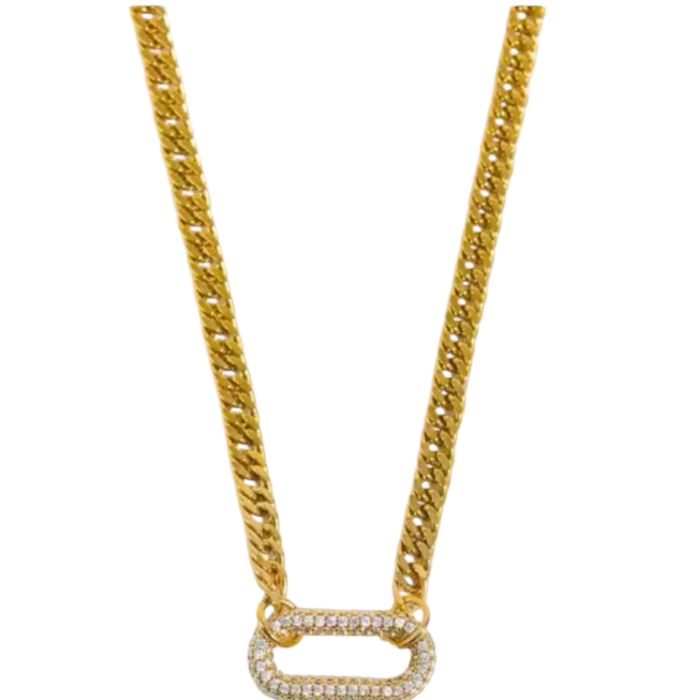 18K Gold Plated Chunky Chain Stainless Steel Zircon Charm Necklace