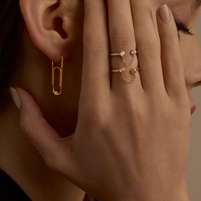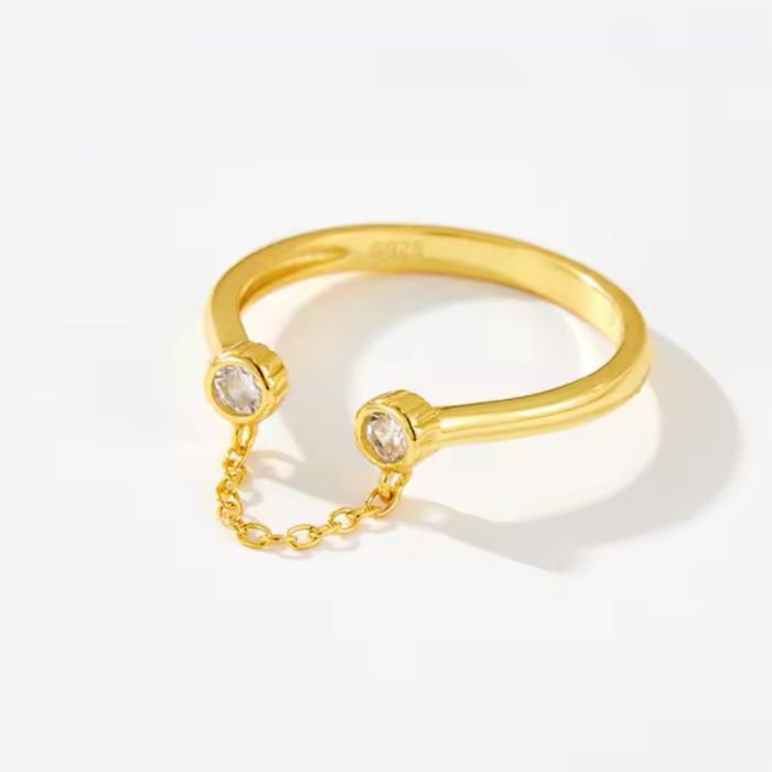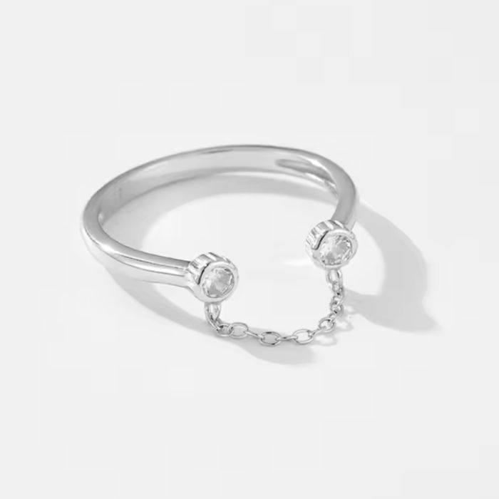 925 Sterling Silver Circle Zircon Chain Open Adjustable Ring