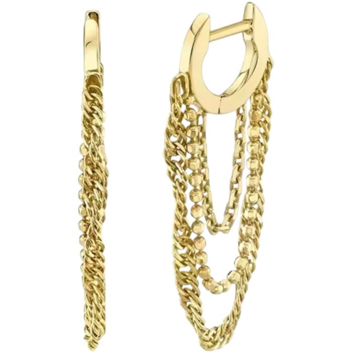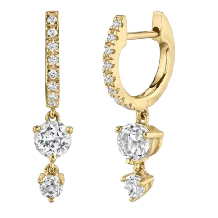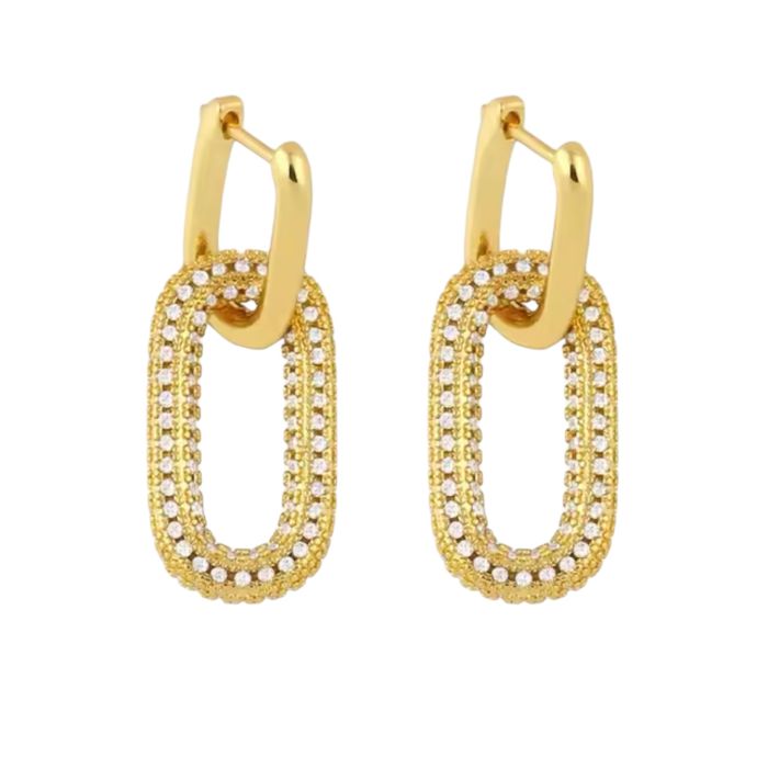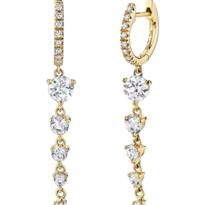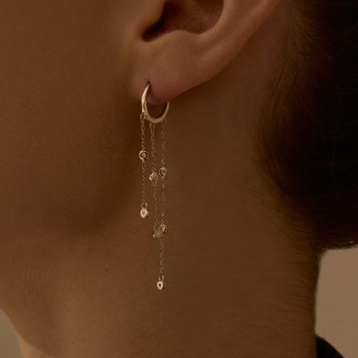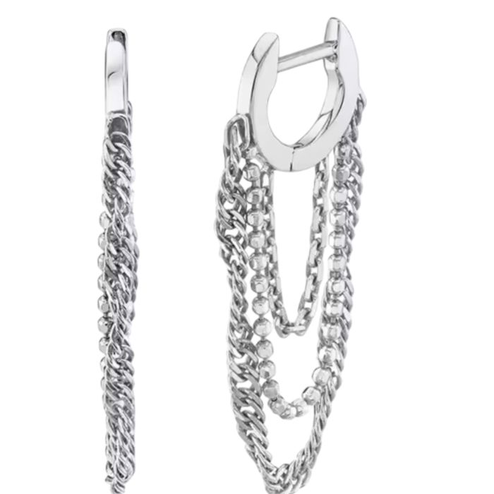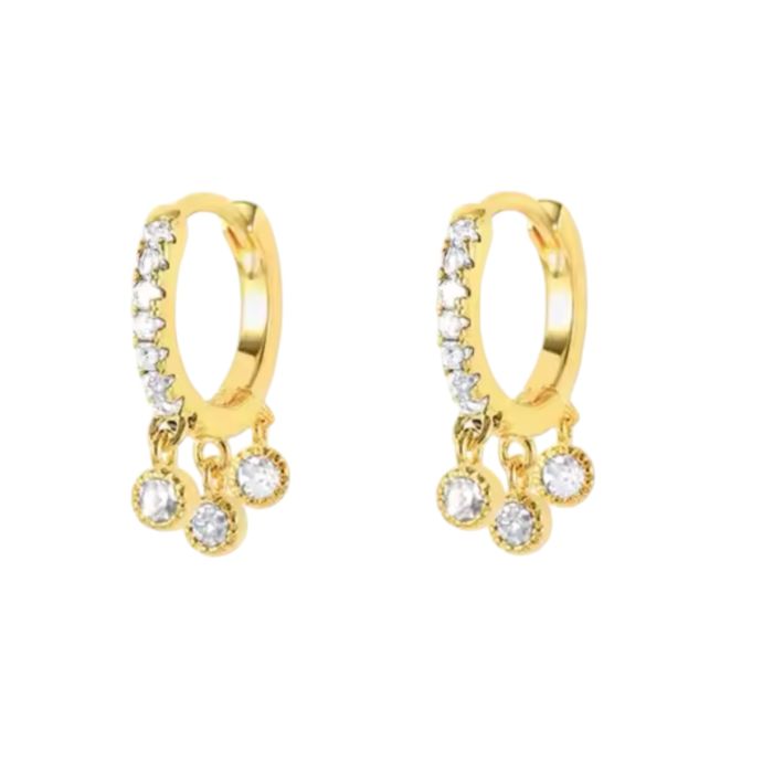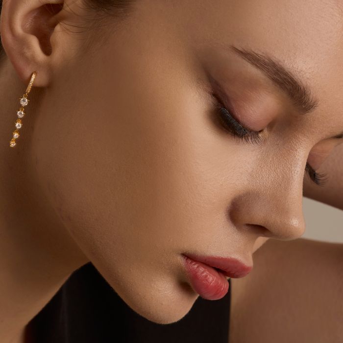925 Sterling Silver Zircons Row Drill Hoop Earrings