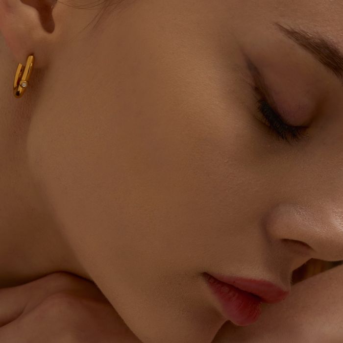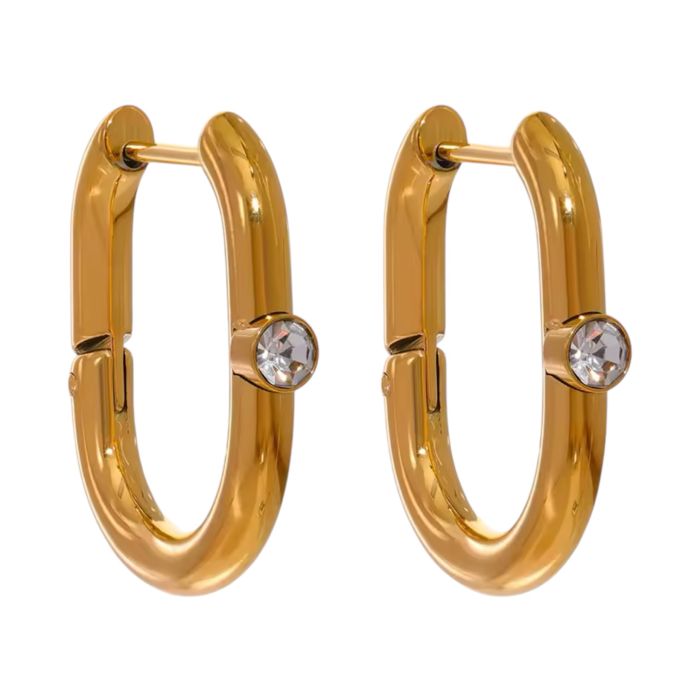 Stainless Steel Geometric CZ Huggie Earrings