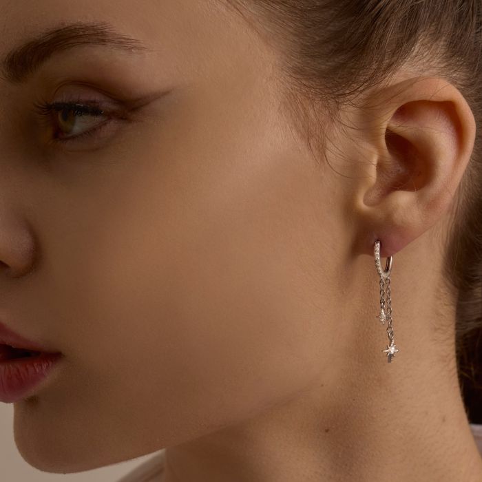 Stainless Steel Zirconia Star Pendant Earring